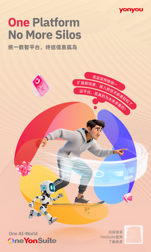 在客户进化、技术跃迁、商业重构的交汇点,YonSuite以“One AI-World, One YonSuite”明确自身的新角色与使命,并向全球宣告:一个智能、互联、高效的商业世界已经到来,而YonSuite,正是为这个世界孕育而生的商业创新平台,将用它的领先技术、先进的管理业务模式助力每一家成长型企业,在‘One AI-World’中持续进化,不断创造卓越。